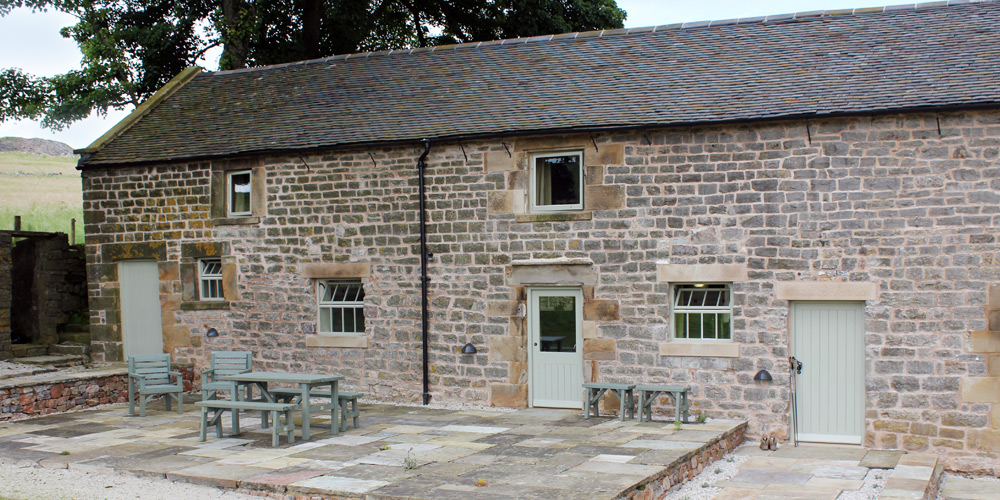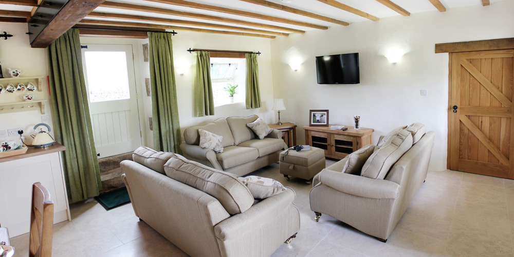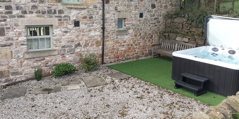 Outside at the front of the barn their is an extensive south facing tiered flagged area with sturdy furniture available for each cottage, ideal for enjoying the peace and quiet or alfresco dining. There is also a large lawned area for children to enjoy. At the rear of the cottage is the hot tub and  a walled gravelled area to enjoy the early morning sun.
